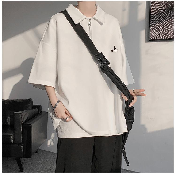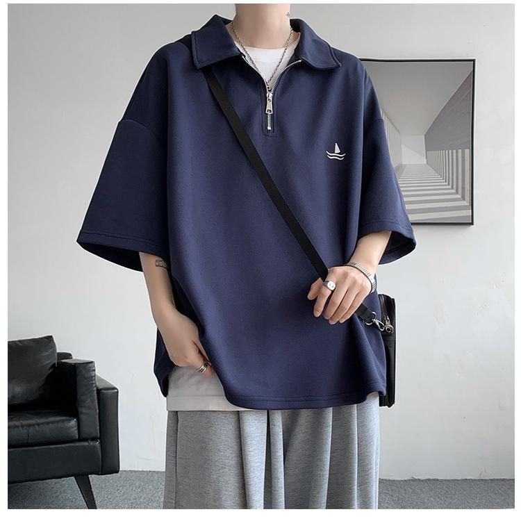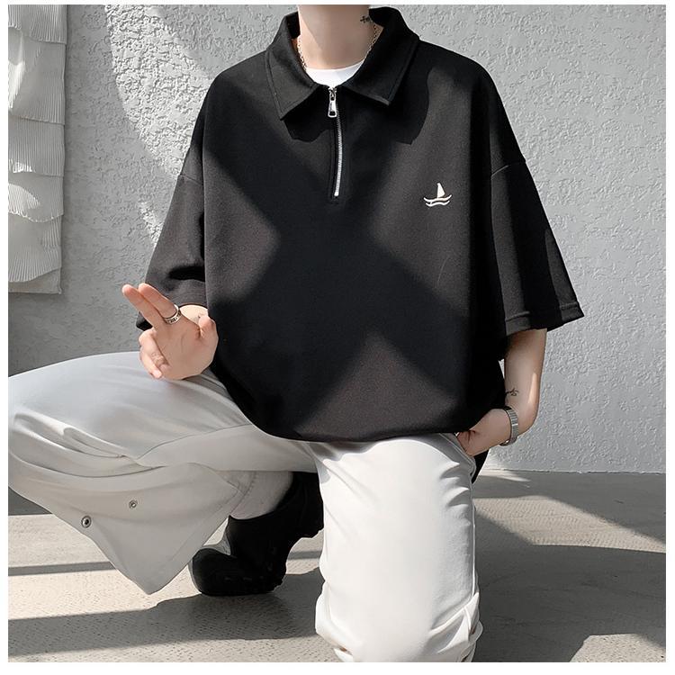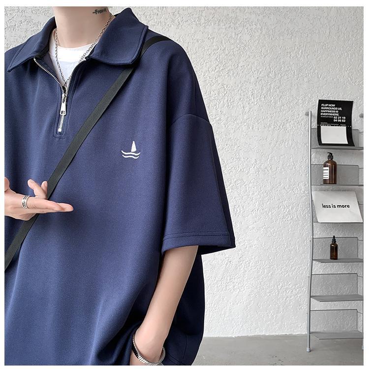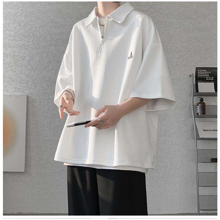 メンズ 半袖 ポロシャツ トップス ドライ オーバーサイズ カジュアル おしゃれ スポーツ 涼しい 吸汗 速乾 通気 丈夫 ウェア 刺繍ロゴ 夏 肩落ち