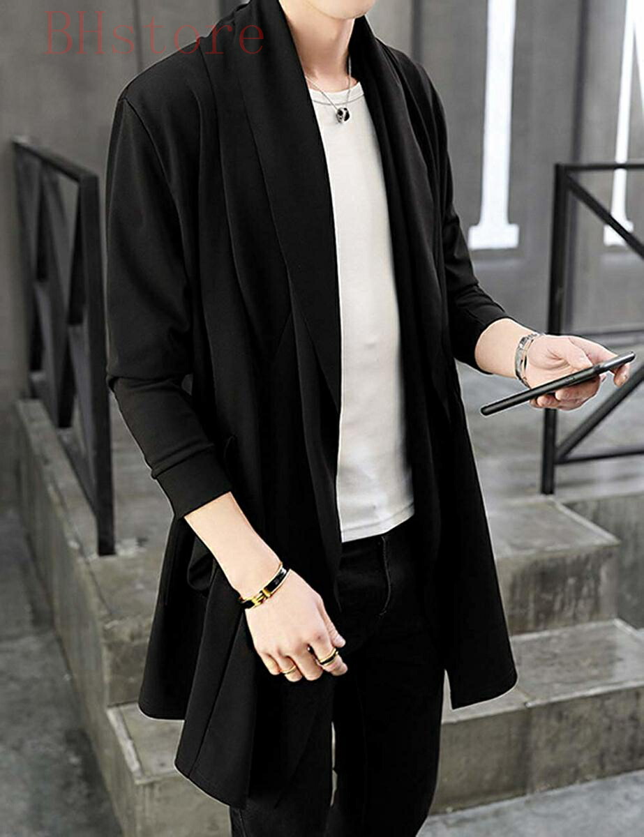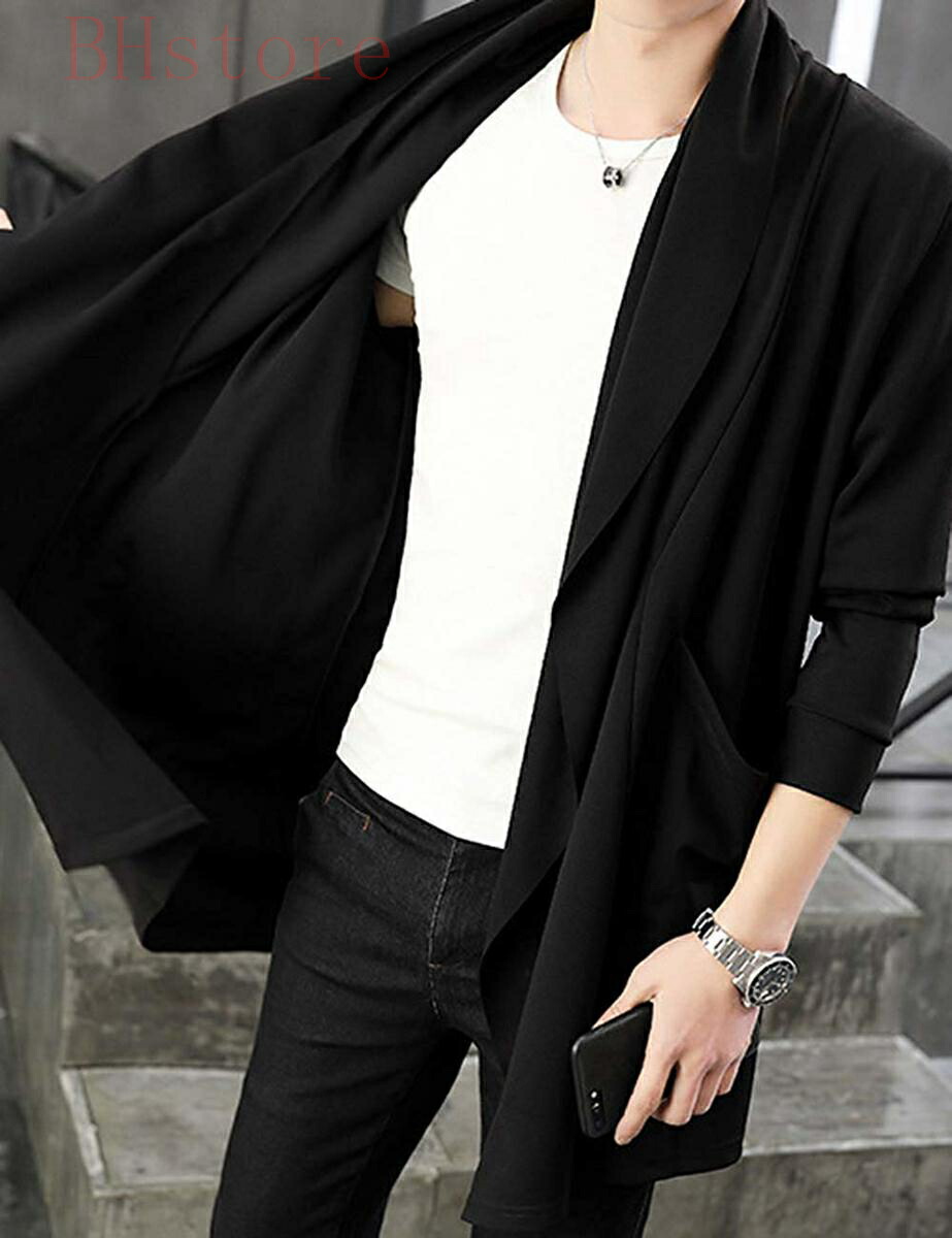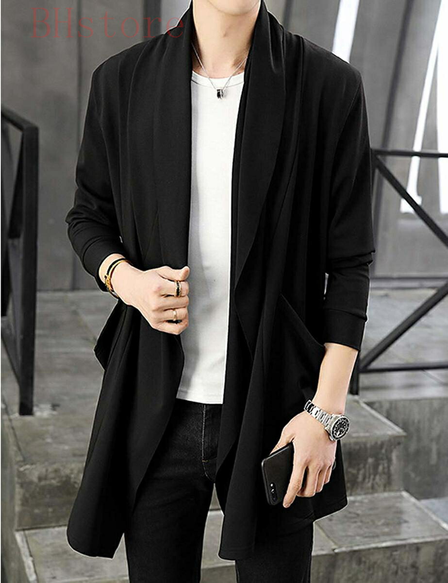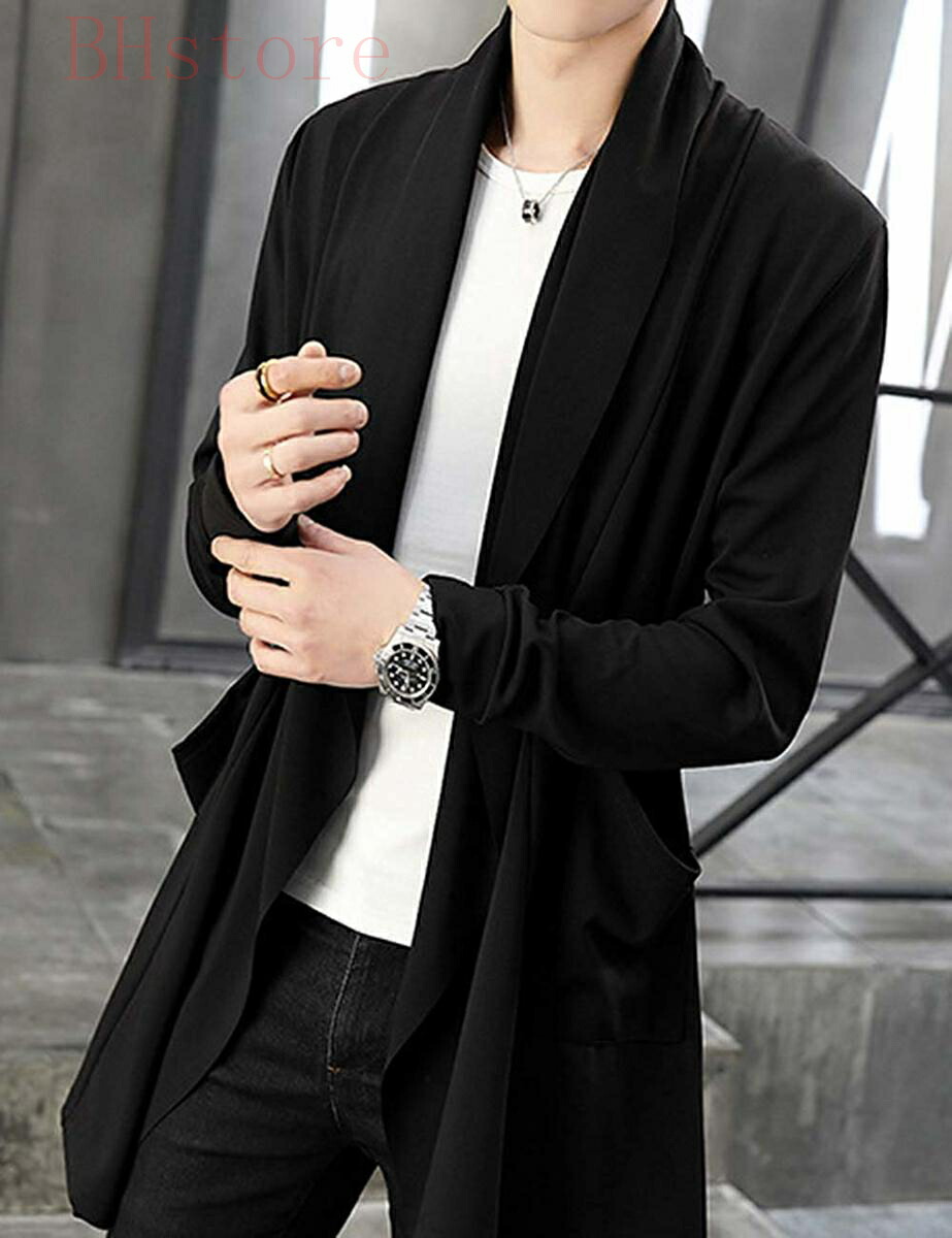 カーディガン メンズ コーディガン ストレッチ アウター 長袖 ロング コート ジャケット 羽織 薄手 無地 スリム トップス カジュアル シンプル ストールカーディガンジャケット ファッション