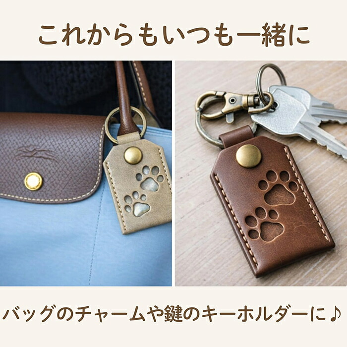 大切な愛犬・愛猫の毛(遺毛)を納め、いつでも身近に持ち歩けるメモリアルキーホルダー。バッグや鍵などにつけて一緒にお出かけできます。
