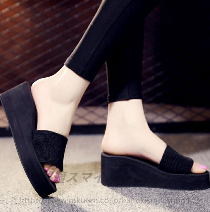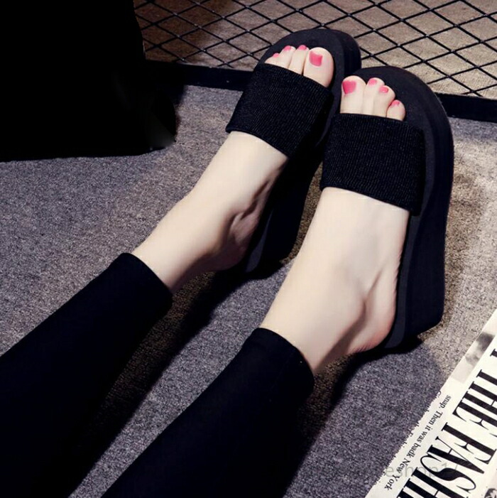 ビーチサンダルレディース長時間歩いても疲れにくいです レディス 厚底 サンダル ビーサン ウェッジソール ビーチサンダル 黒 22.5cm~25.0cm レディースサンダル