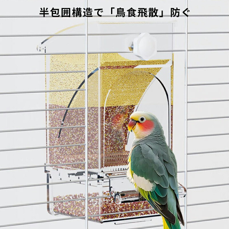 鳥用フードフィーダー 餌やり 餌入れ 給餌機 自動餌与え 透明容器キャット食器 出張旅行お留守番 文鳥 鳥かご掛ける 食べ殻の防止 小型動物