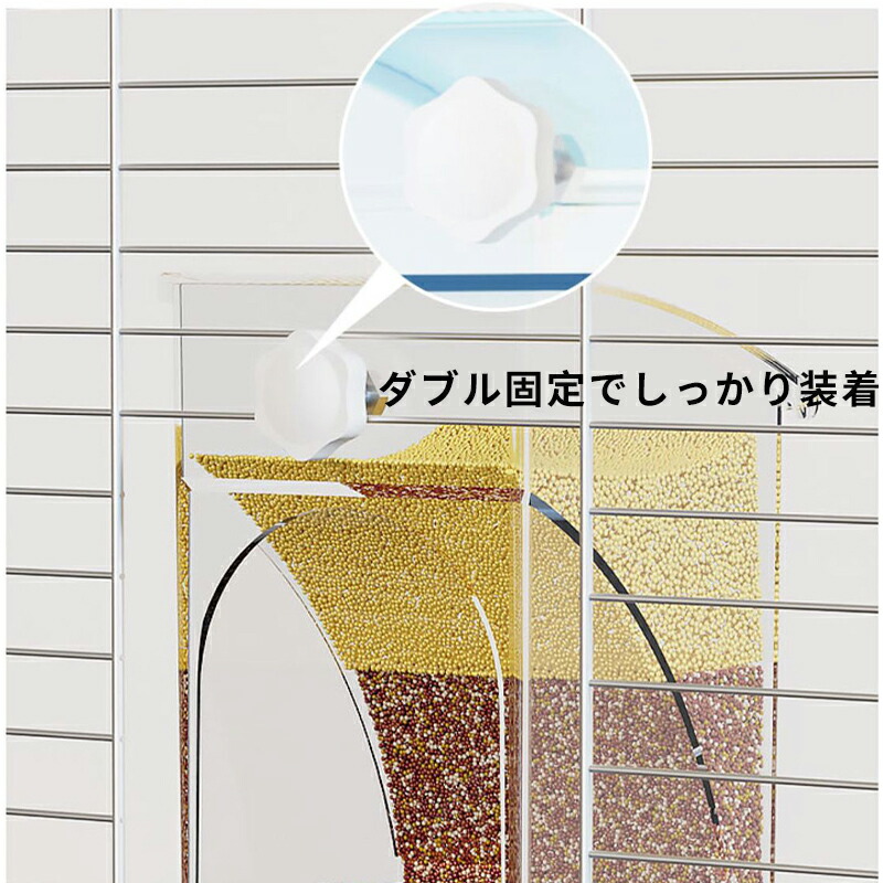 鳥かごへの取り付けは「ダブル固定構造」で、鳥がついてもガタついたり、外れたりしにくく、安定性抜群です。