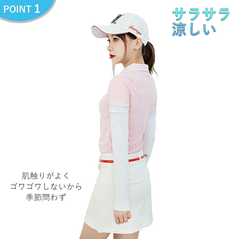 ゴルフ インナーウェア レディース シャツ UVカット アウトドア スポーツ 日焼け防止 ゴルフウェア 夏 接触冷感 UPF50+ ラッシュガード 吸汗速乾 通気 テ 大きいサイズ
