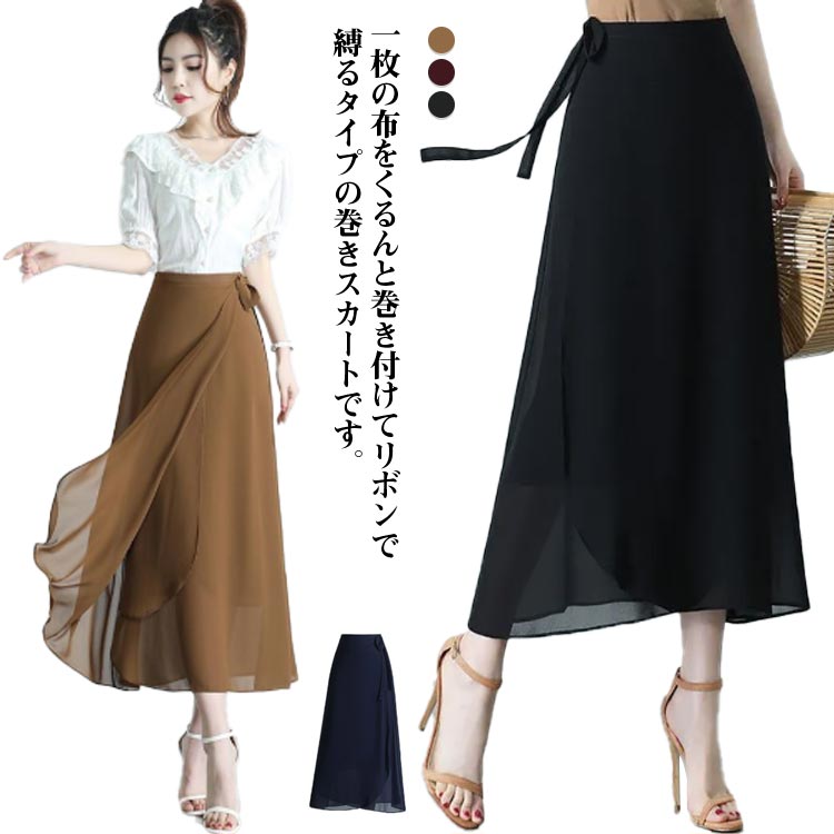 ラップスカート ロングスカート 巻きス レディースファッション 通販 ベージュ ブラック ワインレッド M L XL 2XL 3XL