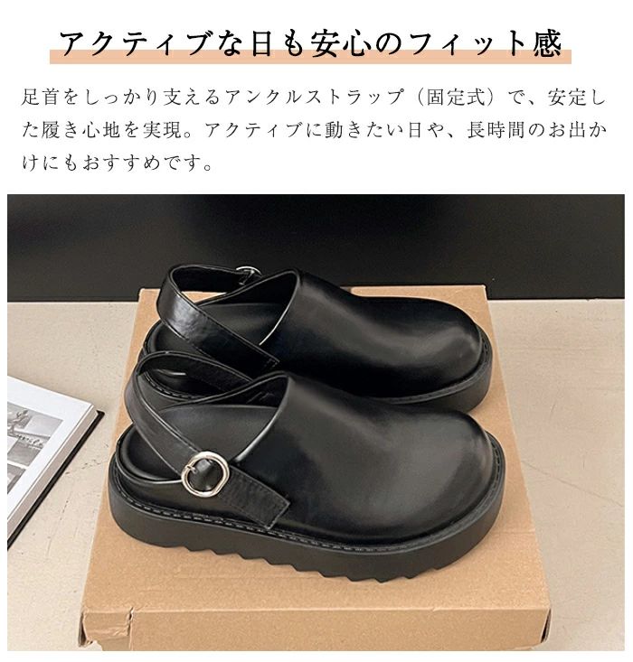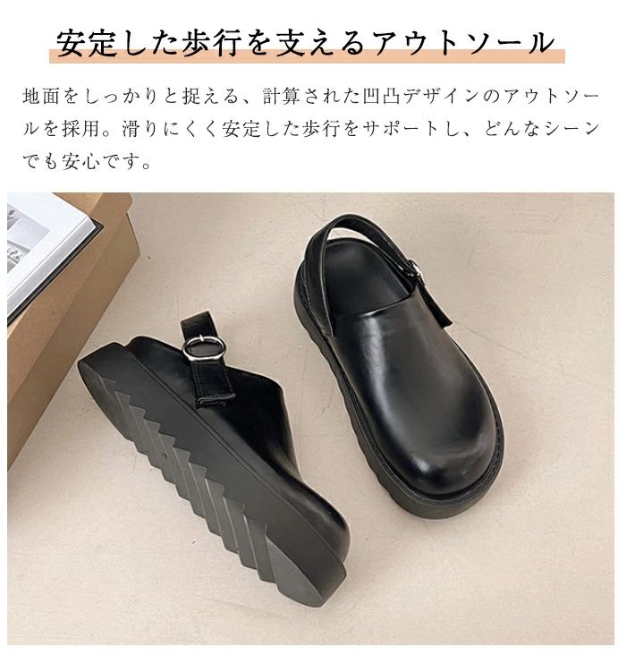 このサボサンダルは、厚底デザインで5cmの身長アップを実現し、スタイルを引き立てます。