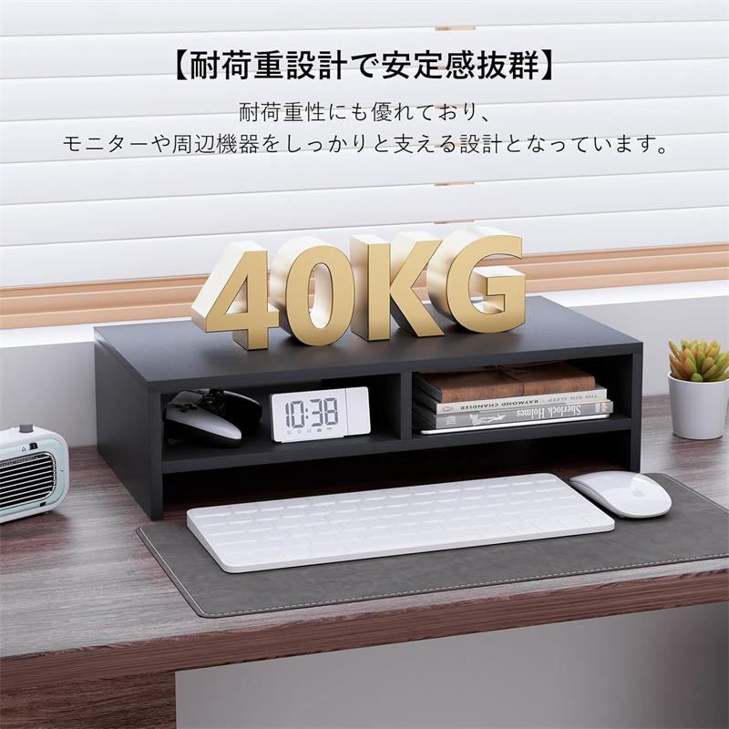 【耐荷重設計で安定感抜群】耐荷重性にも優れており、モニターや周辺機器をしっかりと支える設計となっています。最大耐荷重を考慮しており、大型のディスプレイや重めのキーボードも安定して置くことができます。丈夫で安定した構造により、安心して使用でき、長期間の使用にも耐えることができます。