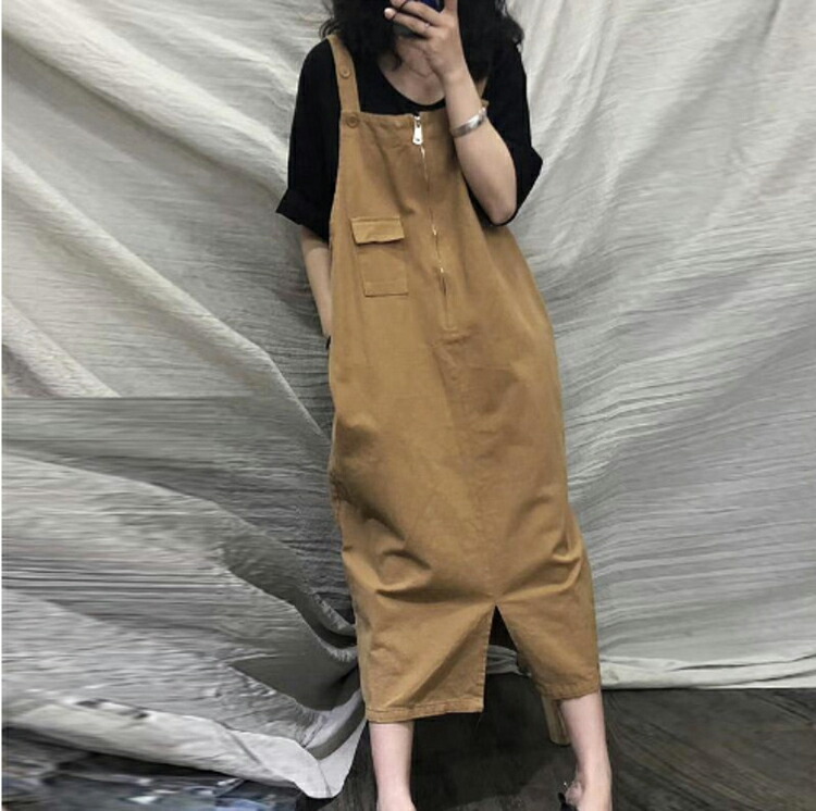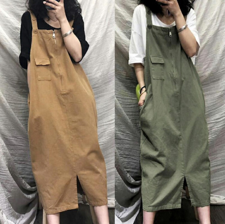 キャミワンピース サロペット ワンピー ブラック キャメル グリーン