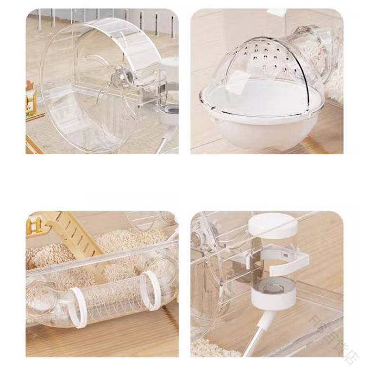 ゴールデンハムスター用アクリル製ケージ45×30×33cm大きい広々スペース給水ボトル付き通気性良好脱走防止静音設計多頭飼い対応組み立て簡単観察しやすい大型回し車お風呂付き小動物