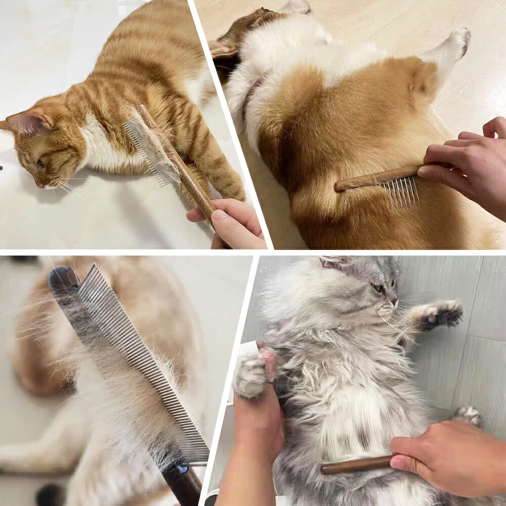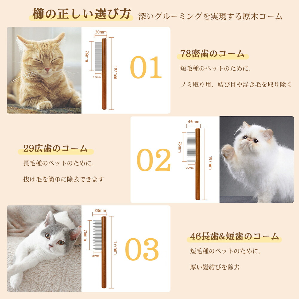 猫 コーム 猫コーム ブラシ 猫クシ ペット 櫛ブラシ 犬 ペット美容ブラシ 脱毛コーム 長毛短毛兼用 肌に負担をかけない お手入れも簡単 木製密歯コーム 犬猫用櫛 犬猫くし ステンレスコーム