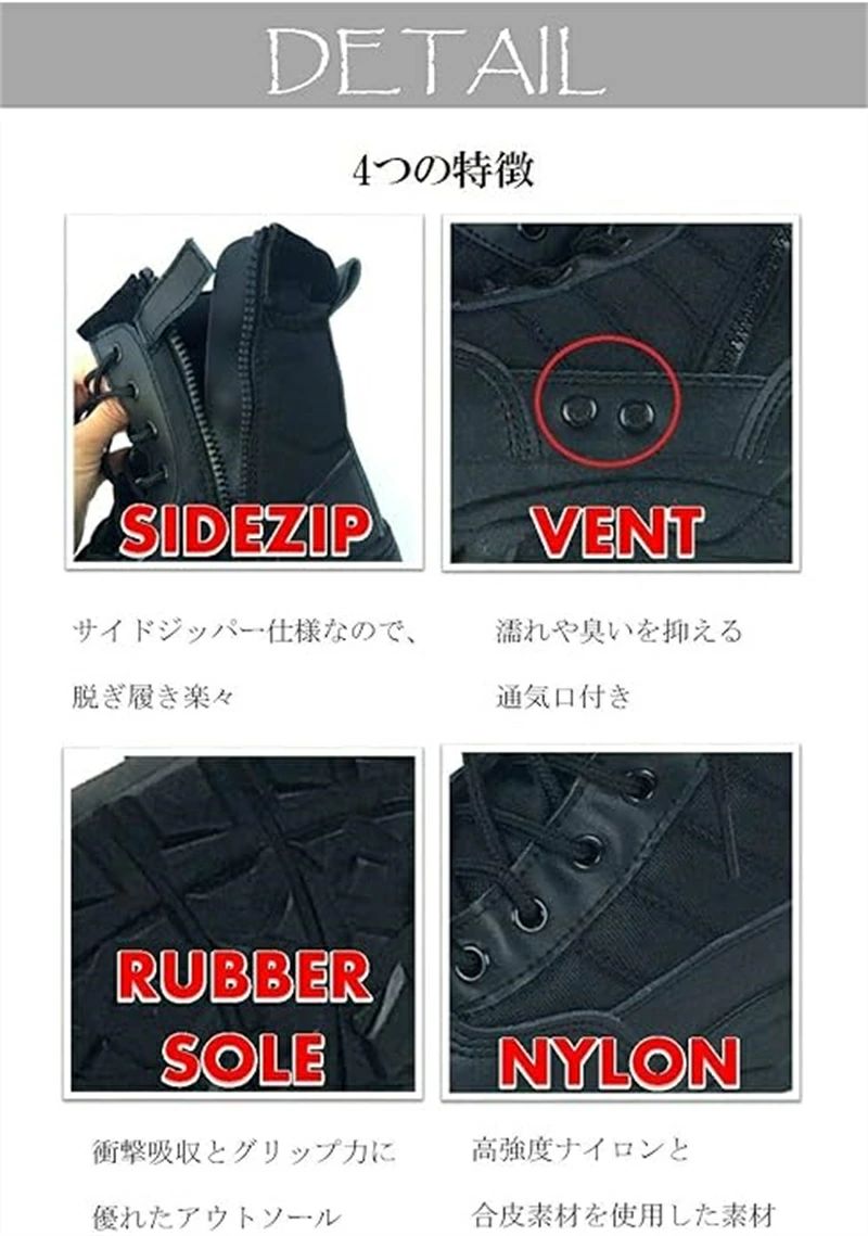 ミリタリーブーツ タクティカルブーツ 迷彩 ライダーブーツ 作業靴 サイドジッパー サバゲ シューズ