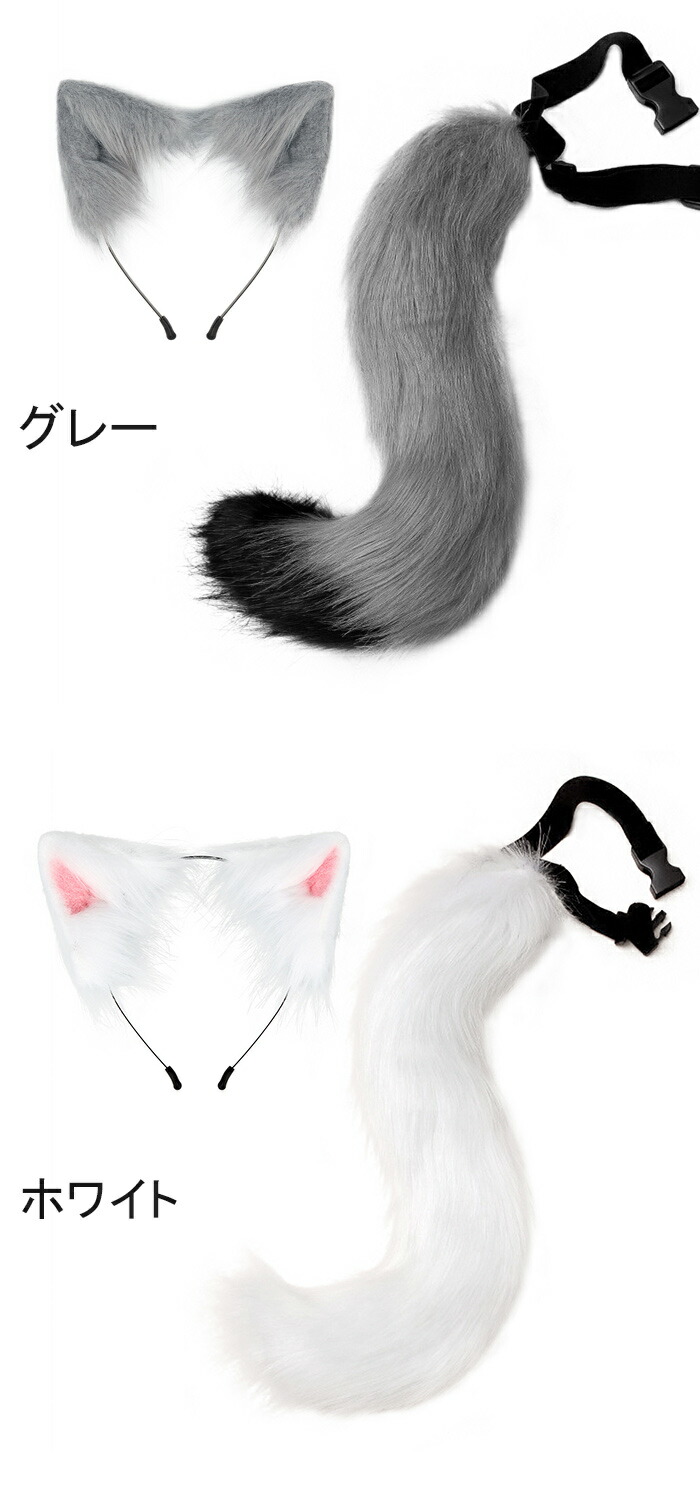 コスプレ小物 猫耳 ねこ耳 尻尾 2点 ホビー 豊富な品揃え グレー ホワイト カーキ ブラック ピンク ブラック ピンク