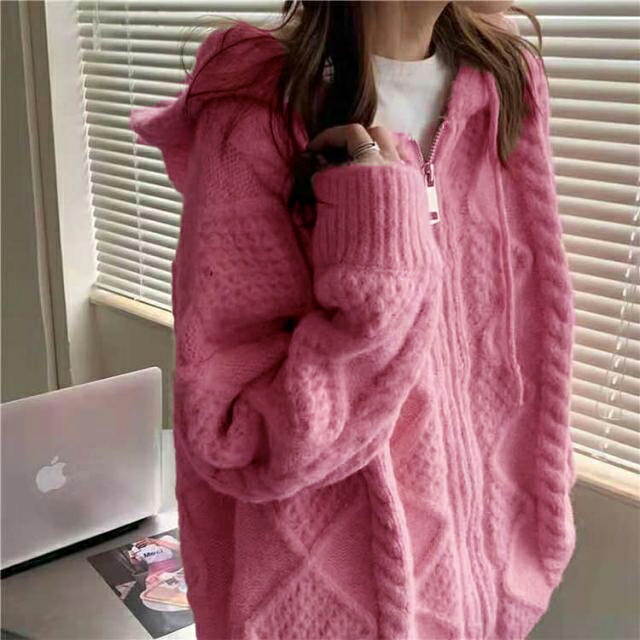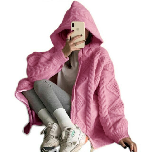厚手 フード付き ニットコート カーデ レディースファッション 新作 ピンク ベージュ モカ S M L XL 2XL 3XL
