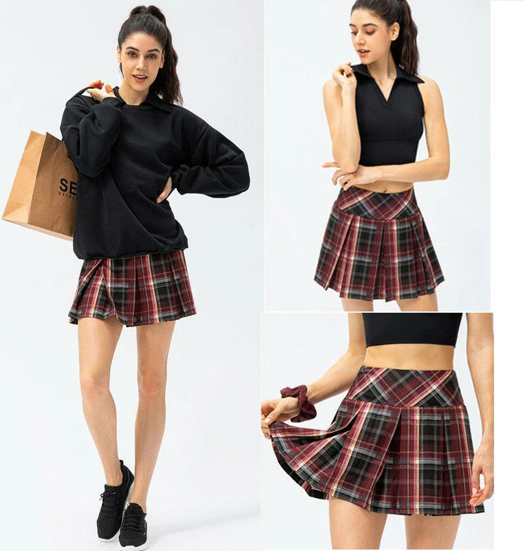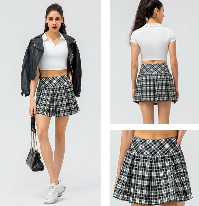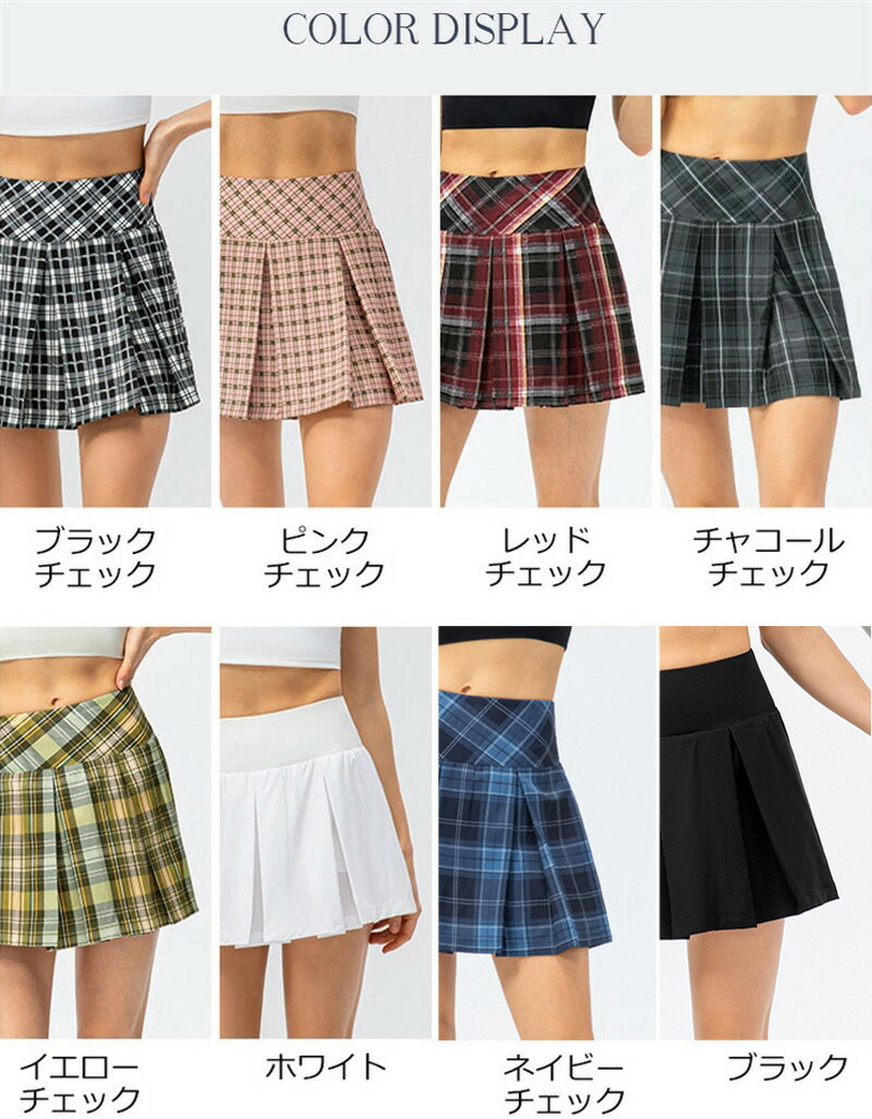 ゴルフスカート ポケット付き スコート レディース ミニ プリーツスカート チェック柄 テニススカート テニスウェア スポーツスカート 運動着 ペチパンツ付き オシャレ