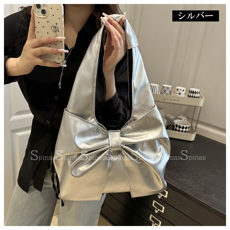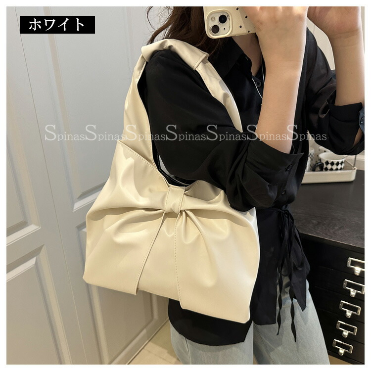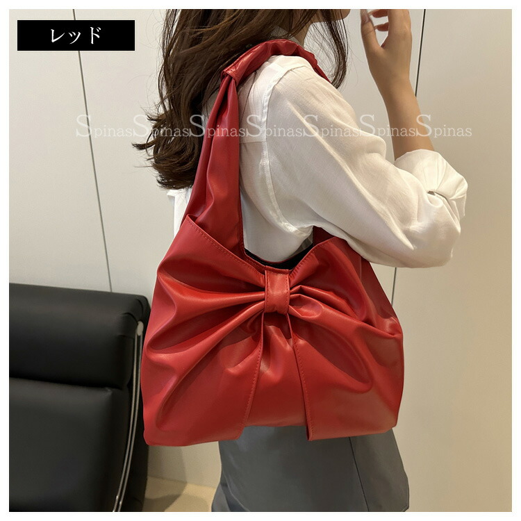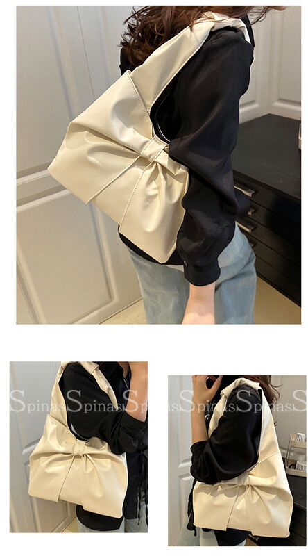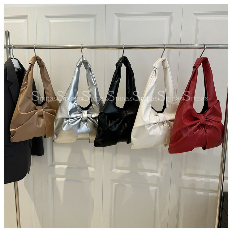 大きめのリボン結びのデザインで上品な印象を与え 5色展開 リボン ショルダーバッグ トートバッグ フェイクファー PU ビッグリボンバッグ肩掛け 大きめ オンオフ Y2K ワンショル きれいめ