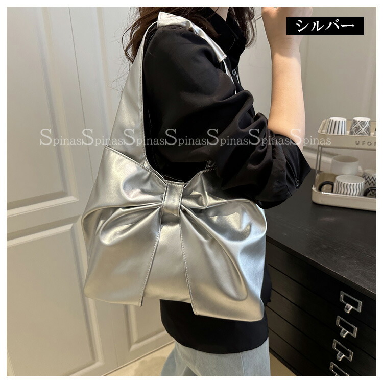 大きめのリボン結びのデザインで上品な印 バッグ レディースバッグ ショルダーバッグ メッセンジャーバッグ 新作 ブラック ホワイト ブラウン シルバー レッド