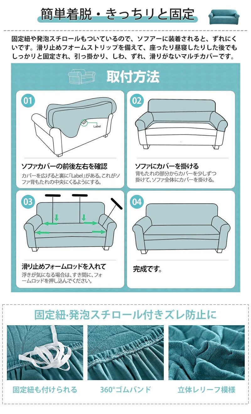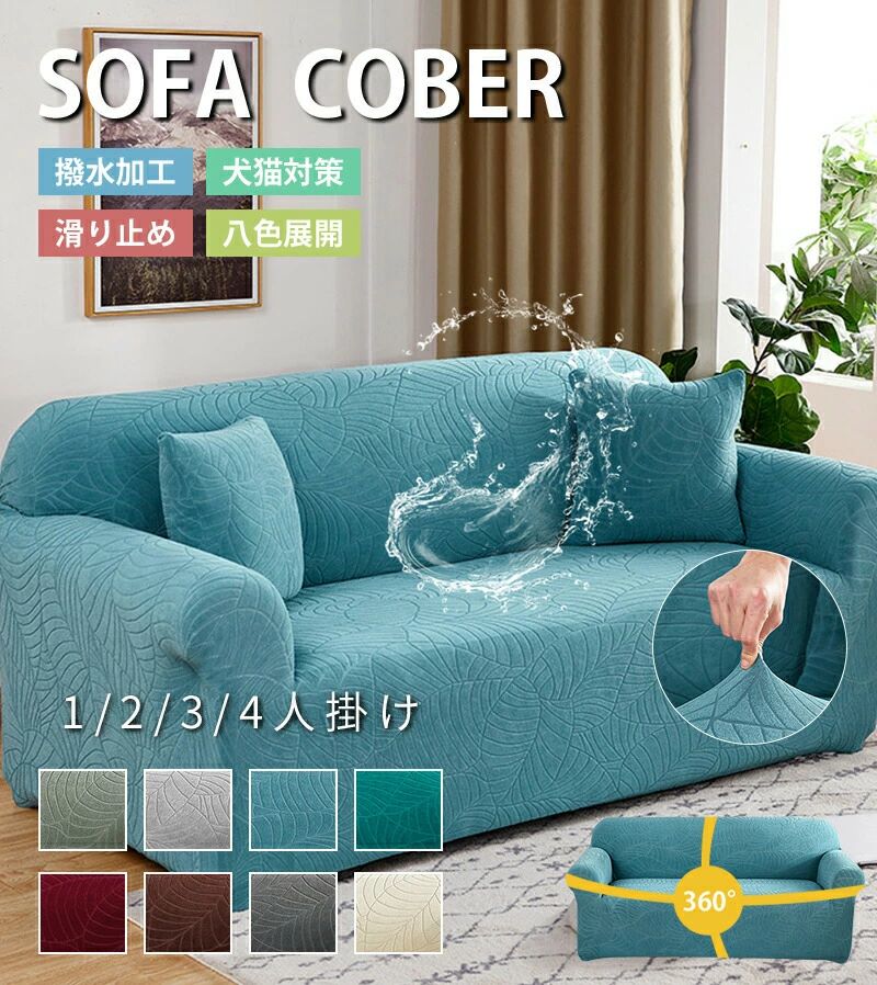 ソファーカバー 肘付き 3人掛け 撥水 草の緑 エメラルドグリーン クラレット カーキ ライトグレー ダークグレー レイクブルー 茶色 1人掛け:90-140cm 2人掛け:145-185cm 3人掛け:195-230cm 4人掛け:235-300cm