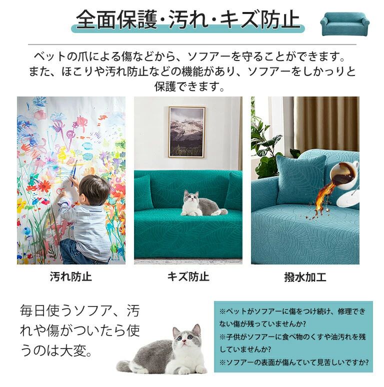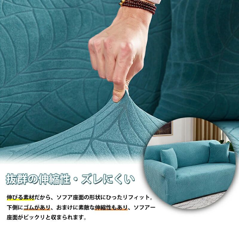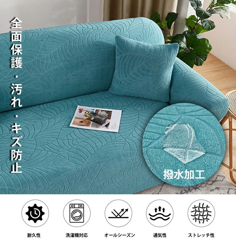 ソファーカバー 肘付き 3人掛け 撥水加工 葉紋様 ソファーシート クッションカバー1枚付 滑り止め 傷防止 爪とぎ防止 耐久性 汚れ防止