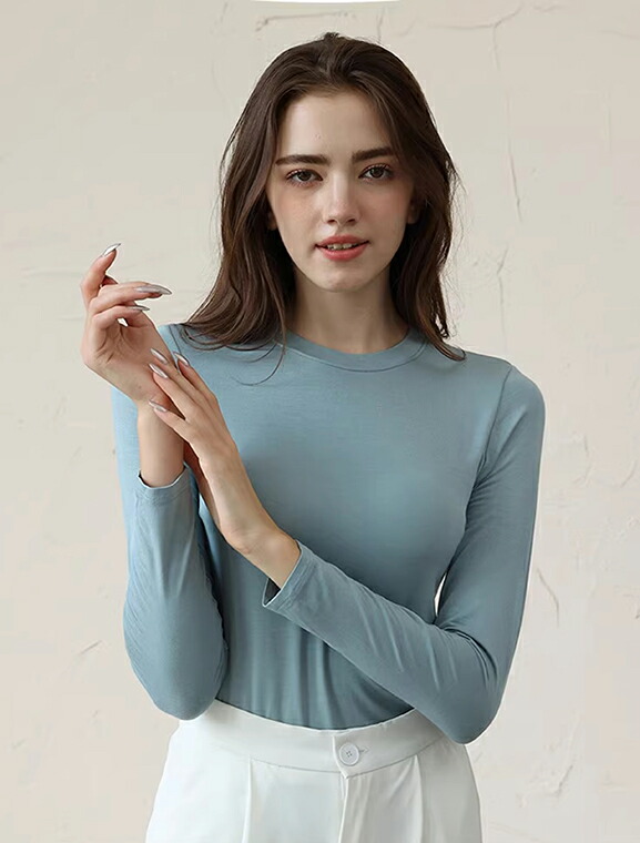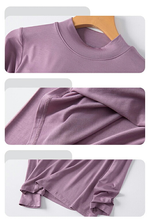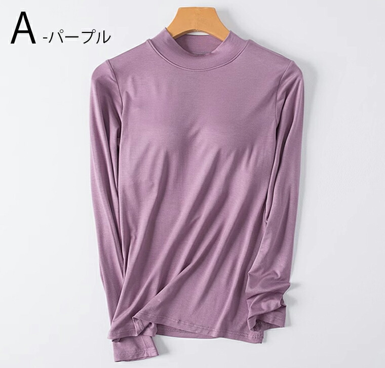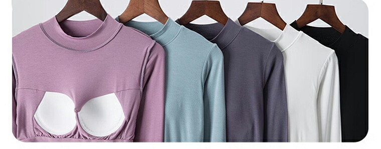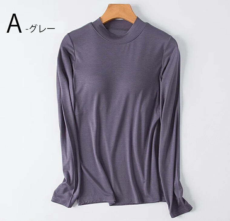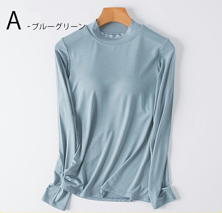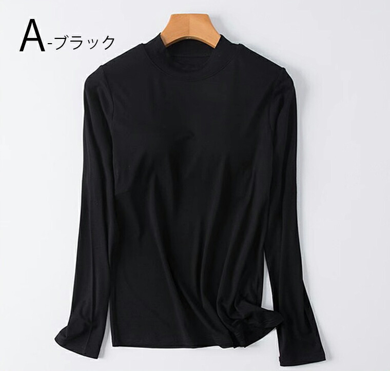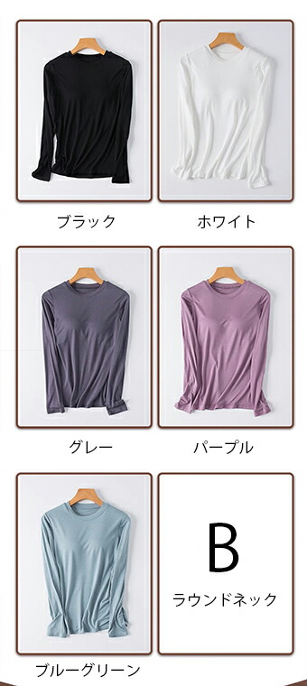 カップ付きなのでこれ1枚でOK 5色展開 2種類 パット付 長袖Tシャツ ラウンドネック ハーフネック アンダーフリー ゴムなし ブラトップ 固定カップ 伸縮性 快適 インナー ルームウェア