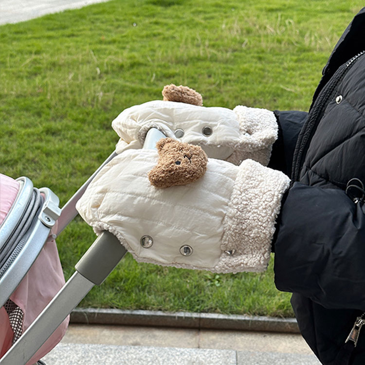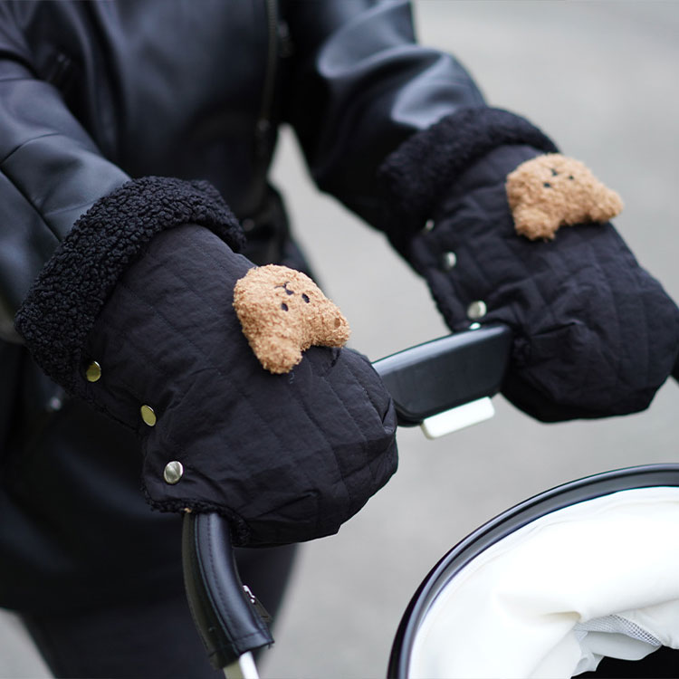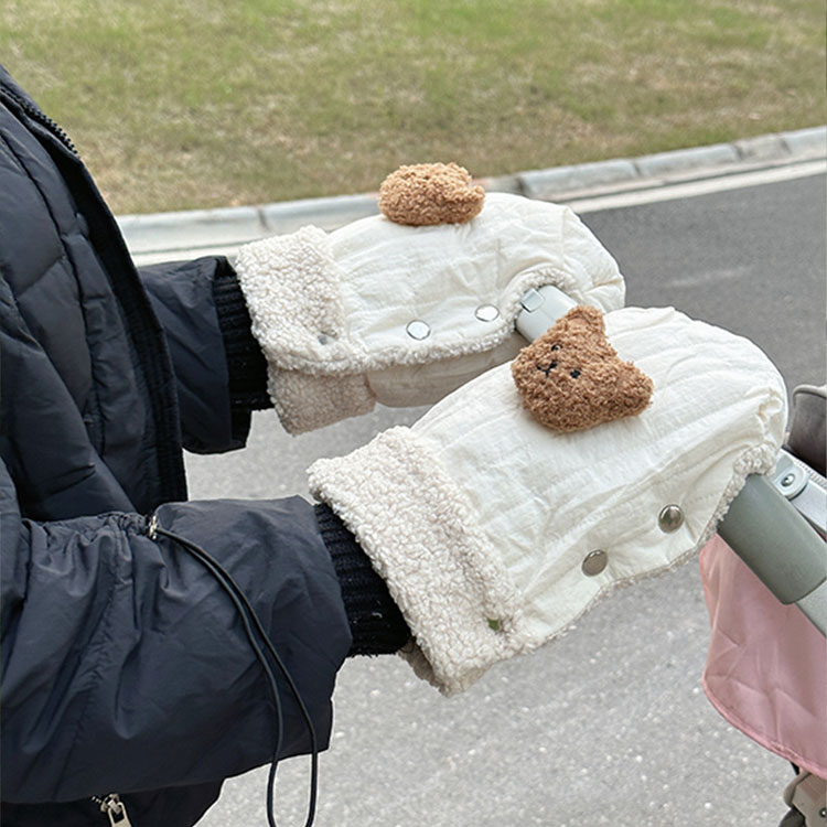 ベビーカー手袋 ベビーカー ハンドルカバー ベビーカー用手袋 グローブ 防寒手袋 暖かい あったか クマ 熊柄 防風 裏起毛 厚手 撥水 防寒 保温 両手 取り付け簡単 散歩 お出 男女兼用