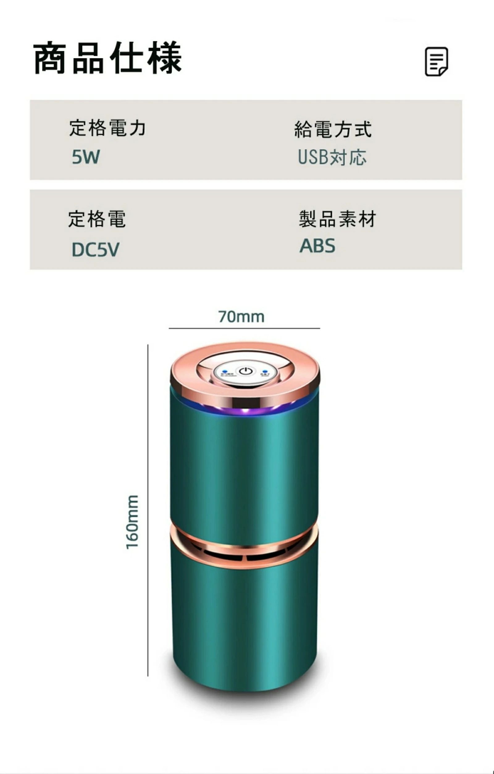 自動車用空気清浄機 車内空気清浄器 空 ホワイト グリーン