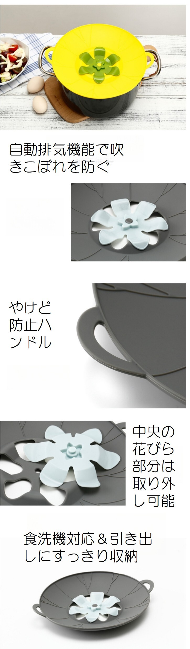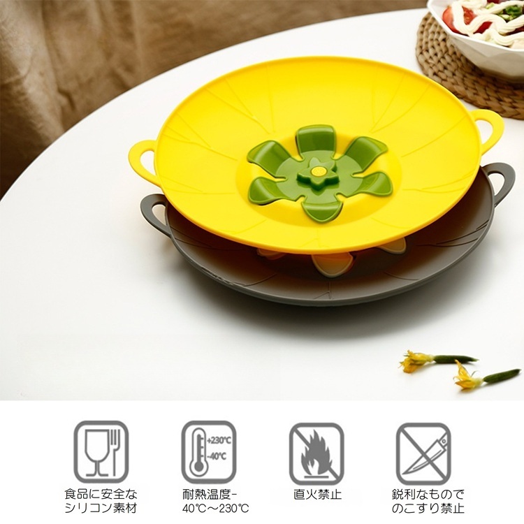 鍋蓋 吹きこぼれ 防止 シリコーン シ 23cm 26cm 29cm イエロー グレー