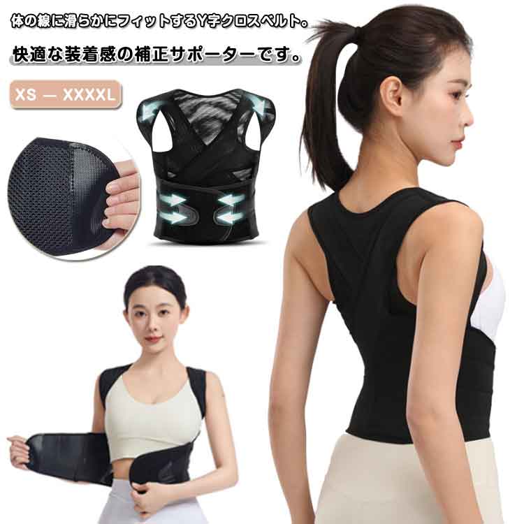 体の線に滑らかにフィットするY字クロスベルト。快適な装着感の補正サポーターです。