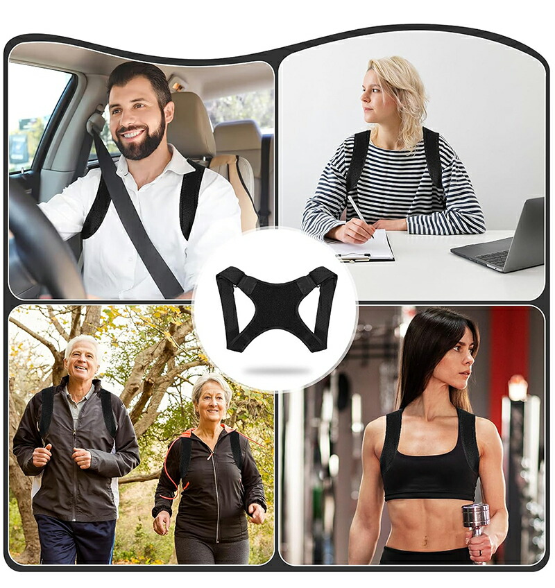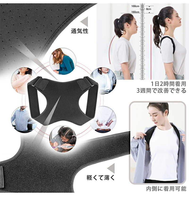 猫背矯正ベルト 肩甲骨サポ ブラック グレー