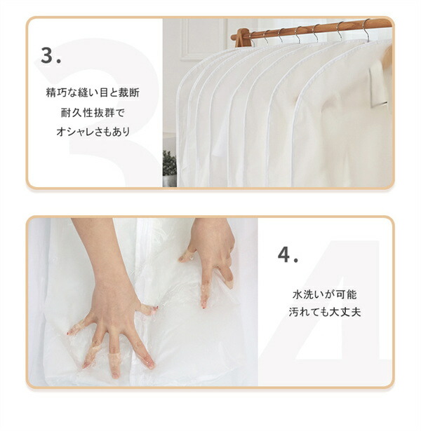 ホコリ、カビ、虫、汚れ、湿気、ペットの毛から大切な衣類などを効果的に保護し、衣類の変色や変形を防ぎます。