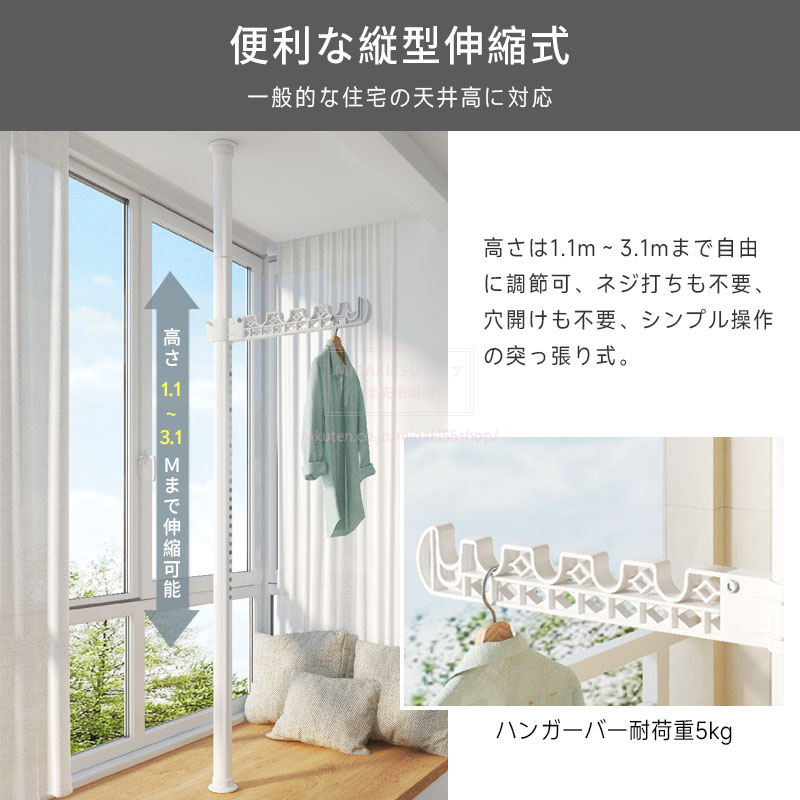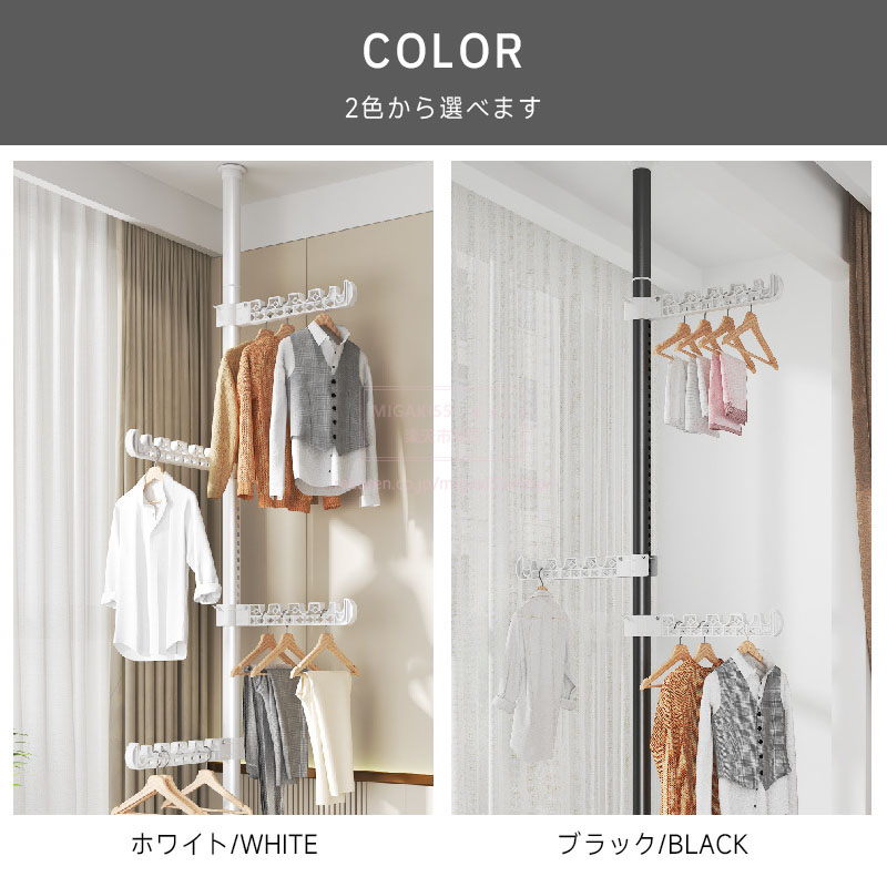つっぱり式ハンガーラック 3段 4段 ホワイト ブラック ハンガーバー3段 ハンガーバー4段 ハンガーバー5段 ハンガーバー6段