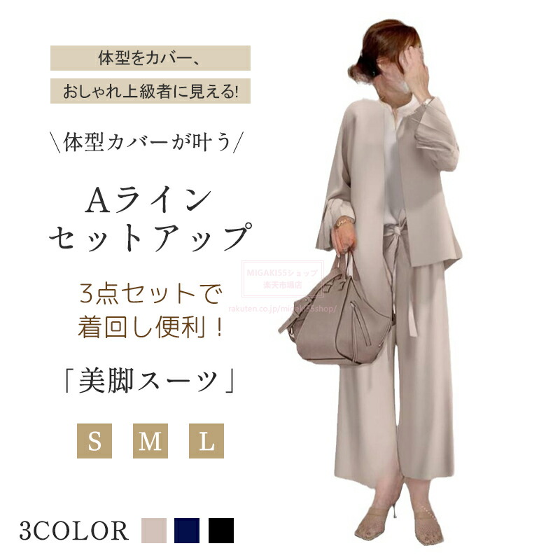 レディーススーツ セレモニースーツ セ スーツ セットアップ パンツスーツ 通販 ブラック ベージュ ネイビー S M L