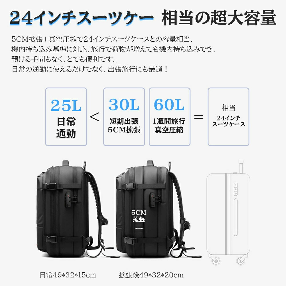 リュック トラベル リュックサック ビジネスリュック 拡張 大容量 30L メンズ 真空圧縮 60L スタイリッシュ 防水 ビジネスバック PC収納 出張 メンズバック パソコン ラップトップ 撥水加工 多機能 ポケット リュック バックパック 通勤 通学 旅行 カバン 自転車 リュック メンズ、リュック 大容量、ビジネスバッグ リュック、リュック レディース 小さめ、リュック レディース 大容量、リュック レディース 軽量、リュック メンズ 大容量、ビジネス リュック、パソコン リュック、バイク リュック、リュック メンズ 小さめ、リュック ビジネス、機内持ち込み バッグ、ビジネスバッグ 3way、機内持ち込み リュック、ビジネスリュック 大容量、リュック 40l、出張用ビジネスバッグ、旅行カバン メンズ、リュック ビジネス メンズ、ビジネスリュック メンズ 大容量、ビジネスバッグ メンズ 大容量、メンズ ビジネスリュック、ビジネスリュック 3way、メンズビジネス リュック、機内持ち込みバッグ、ビジネスバッグ メンズ リュック、大容量リュックサック、出張 バッグ、旅行 リュック メンズ、旅行バッグ リュック、大容量リュック メンズ、機内持ち込み可能 リュック、ビジネス リュックメンズ、3泊4日 リュック、inateck リュック、リュック 旅行 大容量、バックパック 機内持ち込み、パソコン リュック メンズ、大容量 ビジネスバッグ、機内持ち込みサイズ、リュック ビジネス 大容量、仕事用リュック メンズ、通勤 リュック メンズ、ビジネスリュック 30l、リュック メンズ 旅行、lcc 機内持ち込み可 リュック、レディース リュック 大容量、リュック 大容量 通学、リュック 通学、通学 リュック 女子 大容量、リュック 大容量 軽い、リュック レディース、旅行 リュック大容量