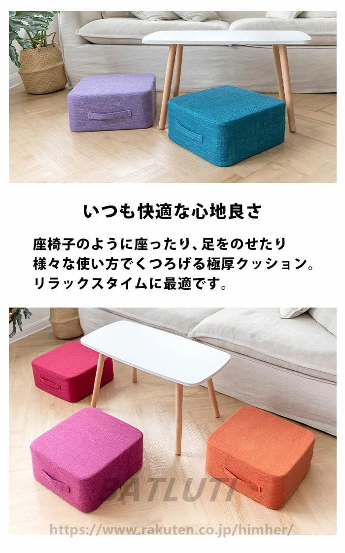 フロアクッション クッション 極厚 硬 ベージュ ブラウン ブルー ダークグレー グレー アイボリー オレンジ ピンク パープル レッド