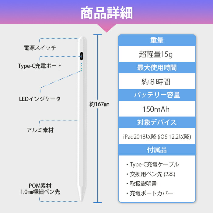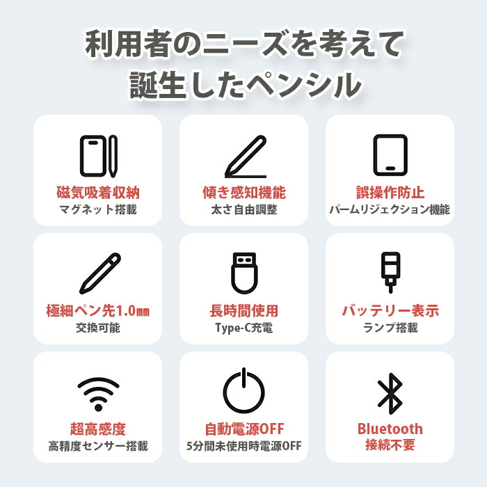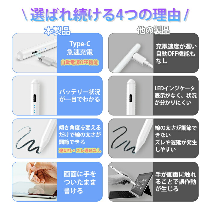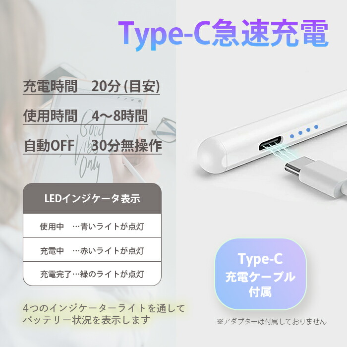 タッチペン iPad専用 タブレット ホワイト ブラック ピンク レッド ライトブルー ライトグリーン
