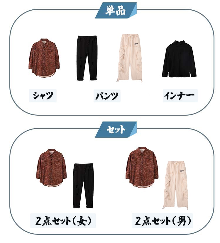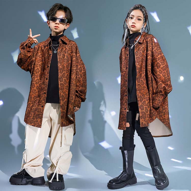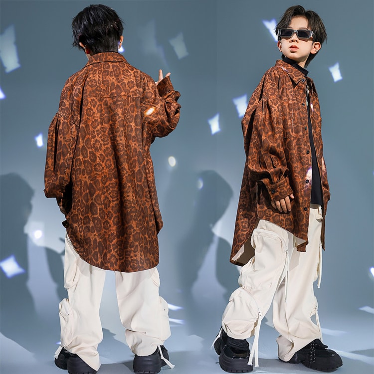 ヒョウ柄 キッズダンス衣装 セットアッ キッズ スーツ カジュアルセットアップ カジュアルパンツセット 続々登場 110cm 120cm 130cm 140cm 150cm 160cm 170cm 180cm シャツ単品 黒パンツ単品 カーゴパンツ単品 インナー単品 2点セット(女の子) 2点セット(男の子)