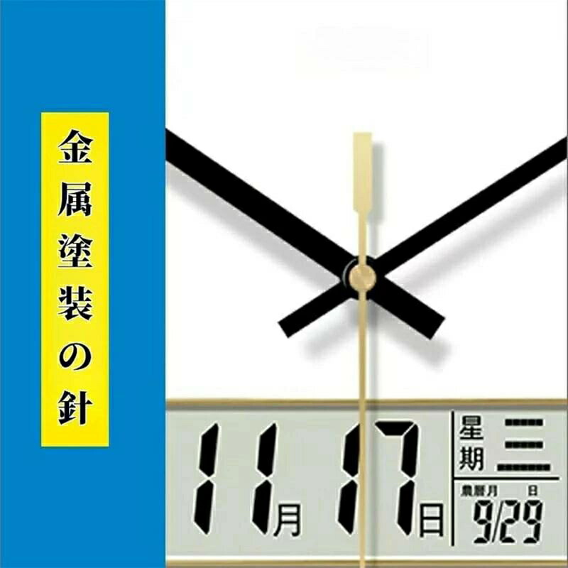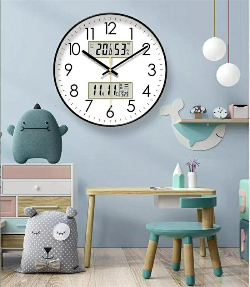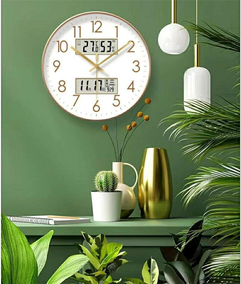 【便利なデジタル温度湿度カレンダー付き壁掛け時計】デジタル液晶文字盤でお部屋の状態(温度湿度)や日付を確認できます。