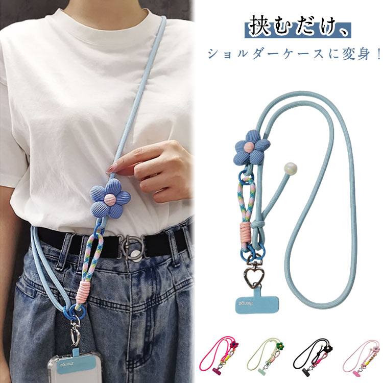 手ぶら スマホショルダー ストラップ スマートフォン 携帯電話用アクセサリー ストラップ マスコット 新作 ブルー ブラック バラレッド グリーン ピンク