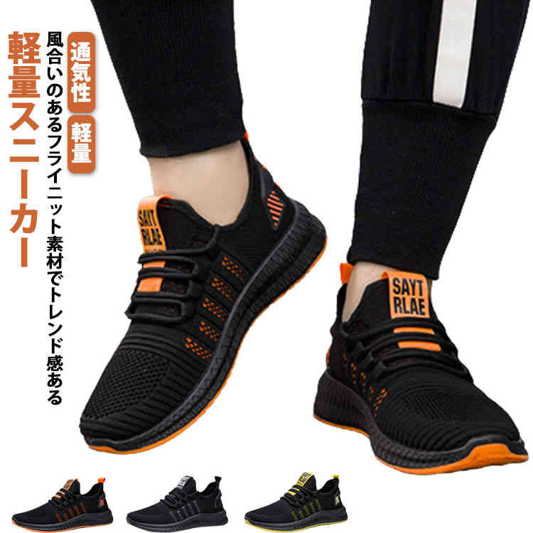 運動靴 スニーカー コンフォートシュー 靴 豊富 黒白 黒オレンジ 黒イエロー 38(24cm) 39(24.5cm) 40(25cm) 41(25.5cm) 42(26cm) 43(26.5cm) 44(27cm) 45(27.5cm)