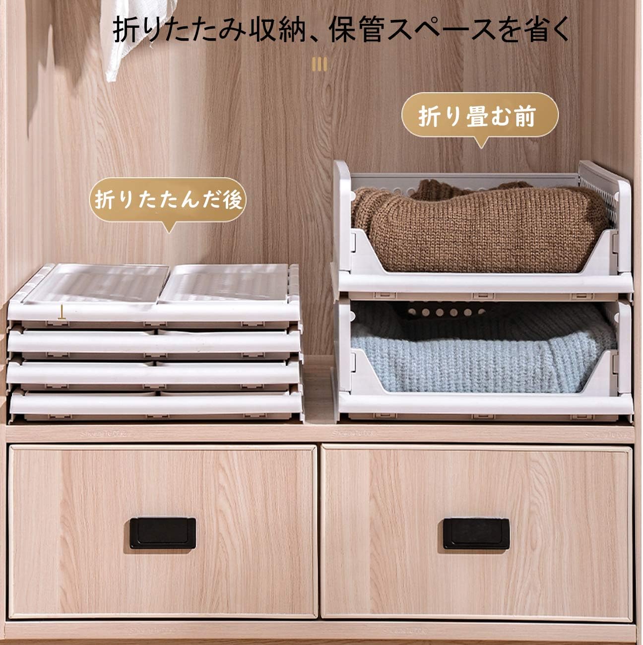 衣装ケース 引き出し クローゼット用 ホワイト イエロー ピンク グリーン S/33.5*43*14.2cm M/33.5*43*18.5cm