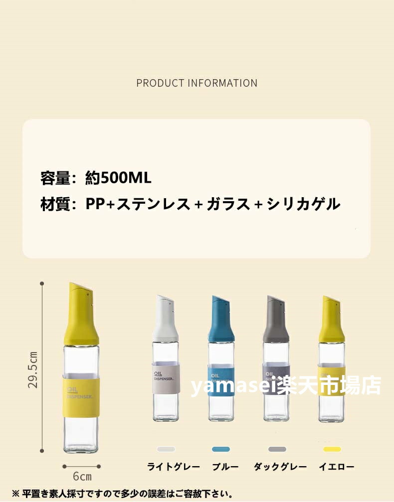 オイルボトル 500ml 液だれしない 保存容器 調味料入れ オイルポット 新登場! ライトグレー ブルー ダックグレー イエロー