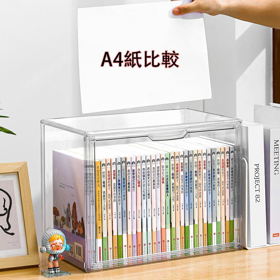 コミック収納ケース 全透明 アクリル ホコリなどの汚れから守る 本 漫画 マンガ コミック 単行本 書類 フィギュア モデル おもちゃの模型 卓上収納 収納 ケース 透明窓 サイドドア 耐久 ボックス