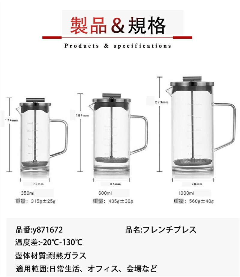 フレンチプレス コーヒープレス フレン キッチン用品 食器 調理器具 豊富な品揃え 350ml 600ml 1000ml