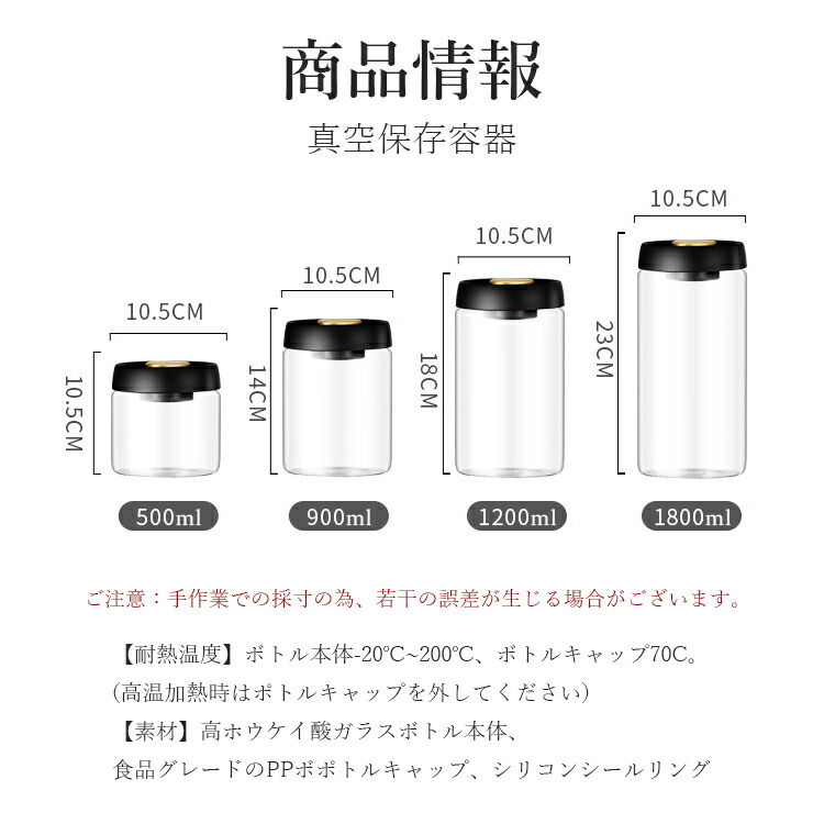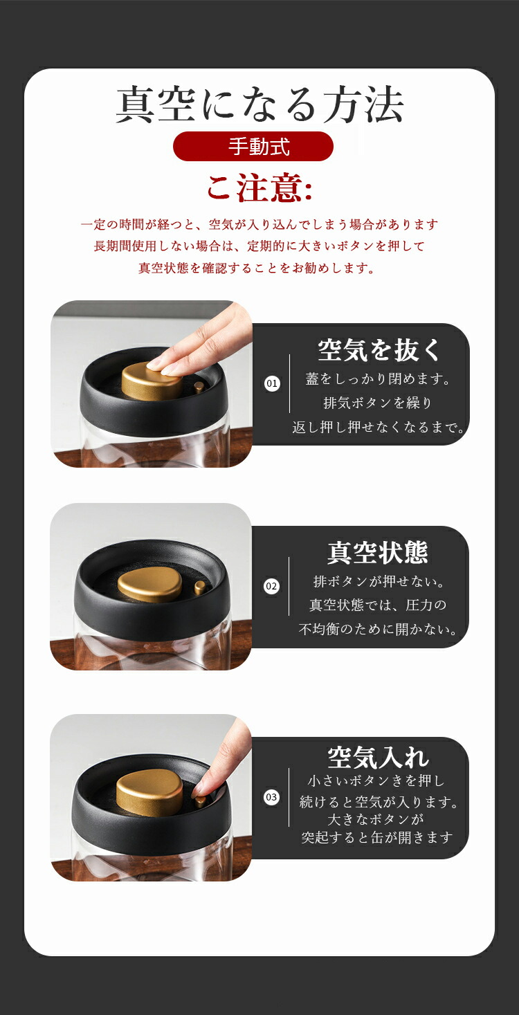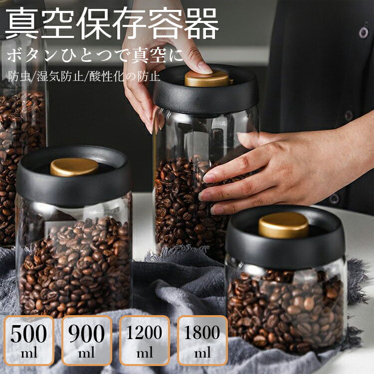 真空保存容器 豆収納 真空容器 手動式 キッチン用品 食器 調理器具 続々登場 ブラック500ml ブラック900ml ブラック1200ml ブラック1800ml