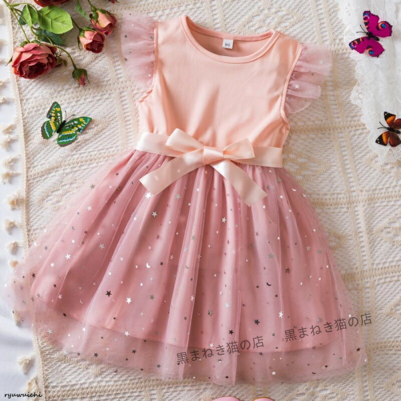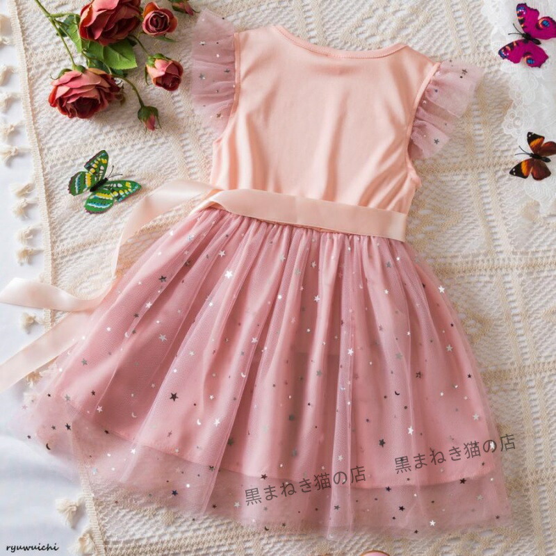 ワンピース キッズ 女の子 ノースリーブ 星 チュール フリル レース 春 夏 かわいい おしゃれ 100cm 120cm 130cm 1 110cm