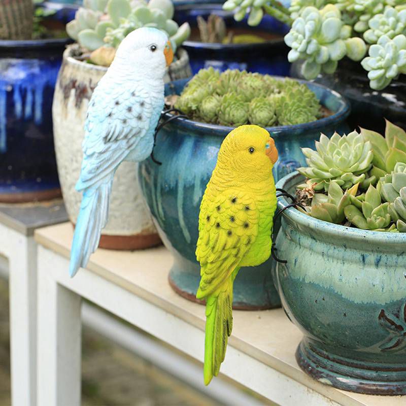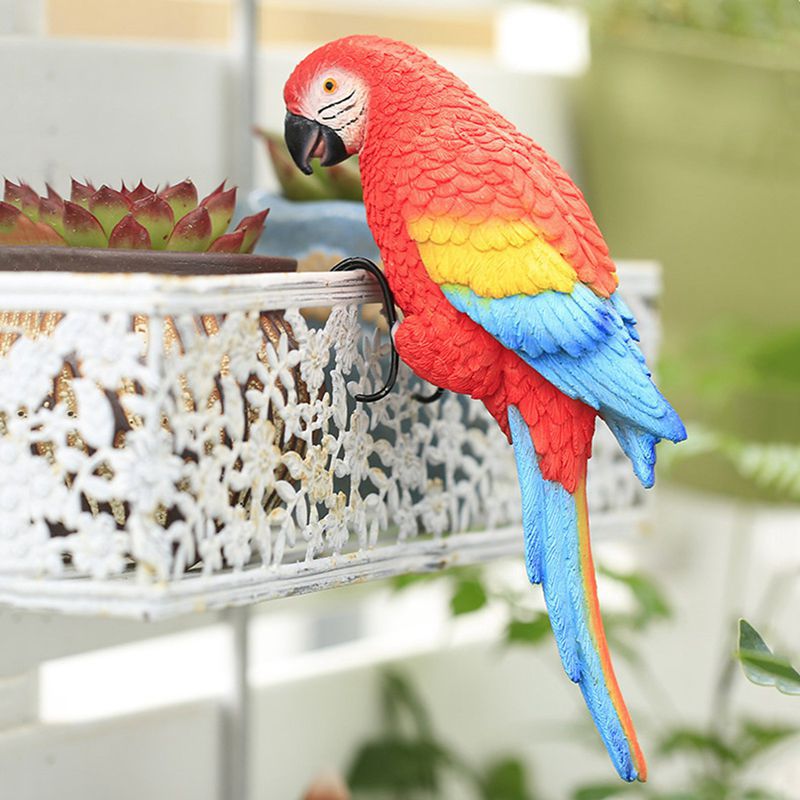 ガーデンオーナメント インコ置物 本物 イエロー レッド ブルー ライトブルー