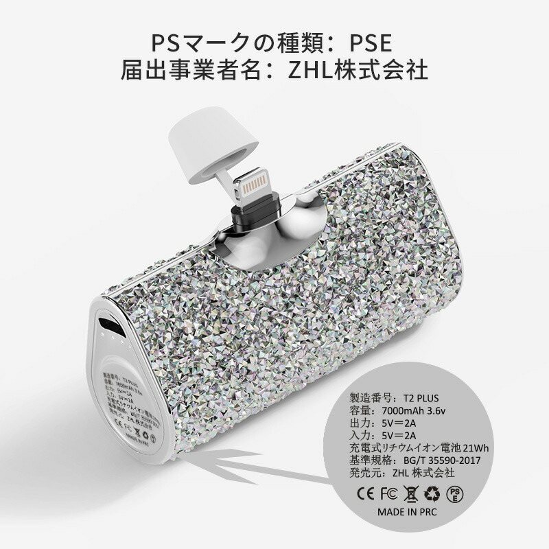 モバイルバッテリー キラキラ iPhone 軽量 超小型 可愛い ワイヤレス 7000mAh Lightning コネクター内蔵 ケーブル不要 コードレス コンパクト PSE認証済 旅 オシャレ