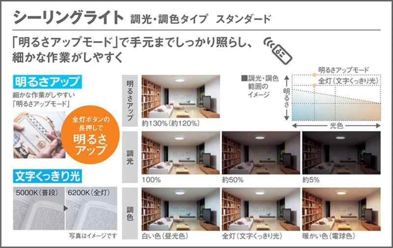 調光・調色タイプスタンダードの全器具に「明るさアップモード」搭載。手元までしっかり照らし、細やかな作業がしやすいあかりです。