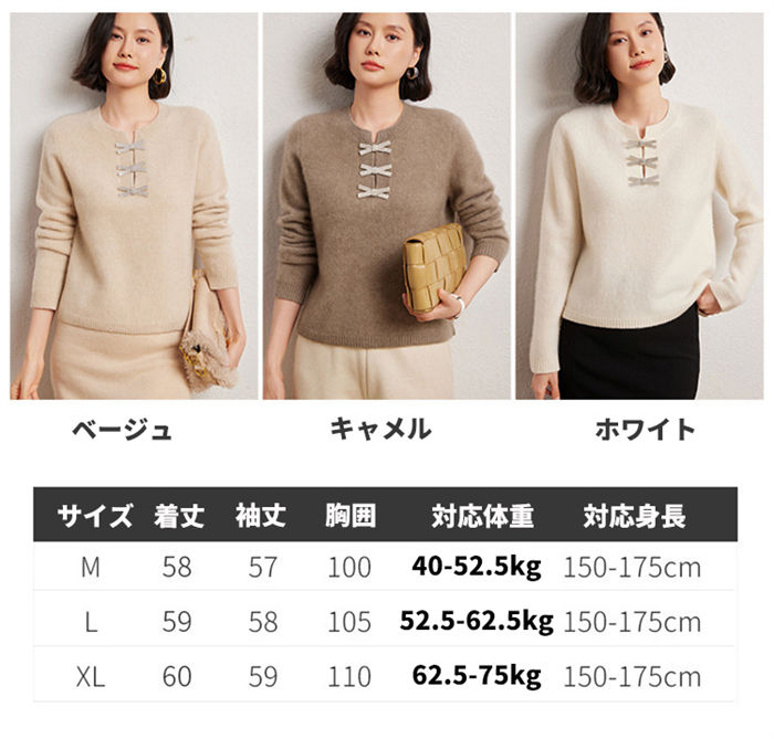 カシミヤ カシミヤセーター レディース トップス ニット セーター セーター 豊富 ベージュ キャメル ホワイト M L XL
