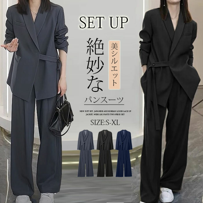 スーツ レディース セットアップ パン レディースファッション 人気 S M L XL ネイビー ブラック