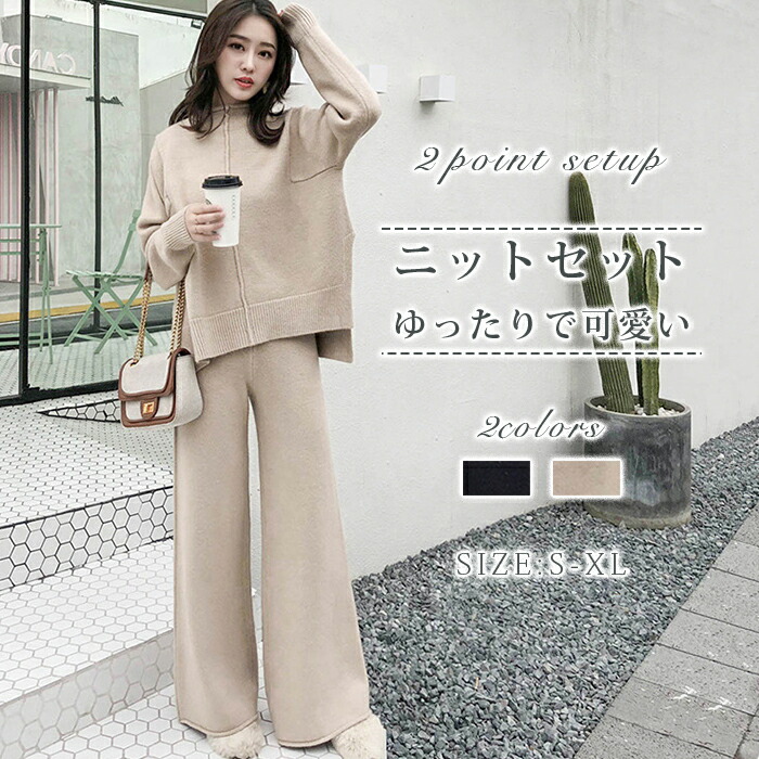 セットアップ レディース 秋冬 40代 レディースファッション 特集 S M L XL ベージュ ブラック