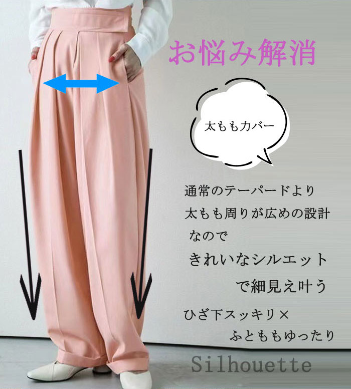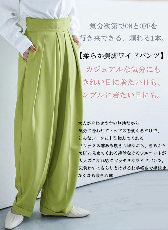 タックワイドパンツ レディース ボトムス 春 夏 イージーパンツ ワイドパンツ マジックテープ タック スラックス 美シルエット タックパンツ ハイウエスト ロング丈 通勤 オフィス カジュ きれいめ